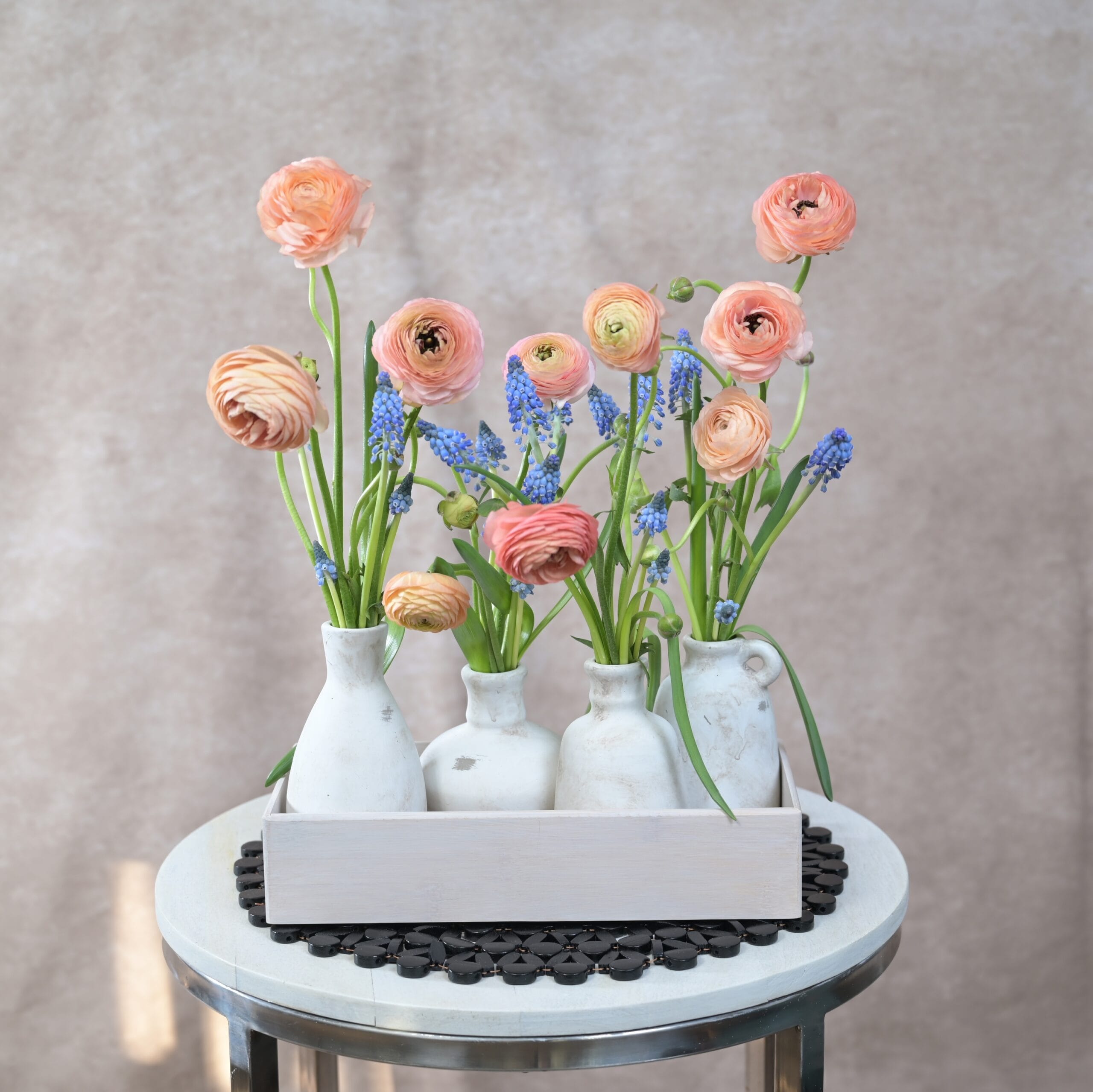 We don’t do grocery-store bouquets, and we don’t do filler. We source premium seasonal stems — garden roses, ranunculus, peonies, dahlias, and imported Dutch varieties — and build each arrangement by hand, one at a time, every morning in our Raleigh studio. No two are identical.
